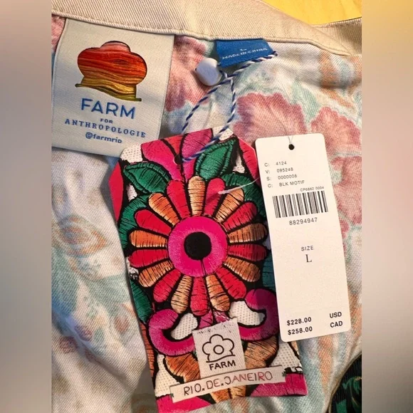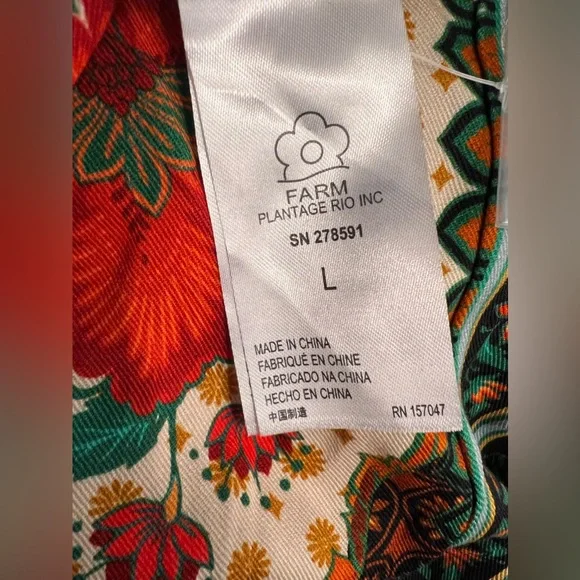 RayonPull-on stylingMachine washImportedDimensions15.75" rise28.75" inseam13.75" leg openingFarm RioWhat began as a handful of goods at a local fashion fair booth has grown into one of Brazil's most recognizable labels for sun-soaked dressing. With vibrant colors, bold silhouettes, and feminine details embedded in every design, Farm Rio's cheerful creations are crafted with an exotic, toes-in-the-sand spirit that's simultaneously fashion-forward and vintage-inspired.