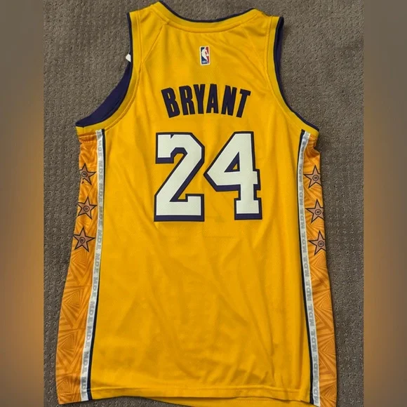 Authentic Nike NBA Kobe Bryant “Mamba Day Edition” jersey in iconic Lakers gold. This rare jersey features Bryant’s name and number 24, with detailed “M.D.E.” accents on the sides and NBA logos. Perfect for collectors and fans of the Black Mamba. Size [X-large]. Excellent condition, never worn, and 1 year old.The “M.D.E.” printed on the sides of this Nike Connect authentic Kobe Bryant jersey stands for “Mamba Day Edition.” This design was part of a special release by Nike to honor Kobe Bryant, celebrating his legacy and career. These jerseys are often released as limited editions and feature unique details that commemorate his iconic status in basketball.The “WISH” logo on the front of the jersey represents the partnership between the Los Angeles Lakers and Wish, a popular e-commerce platform. It is the sponsor logo, as NBA teams began including advertisements on their jerseys starting in the 2017-2018 season. Wish signed a multi-year deal with the Lakers, and their logo appears on Lakers jerseys as part of this sponsorship agreement.