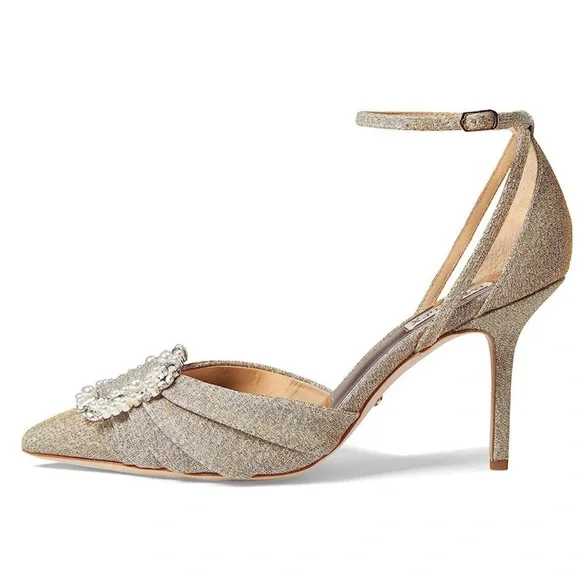 These shoes wore on display but have never been used.(Dirty sole).Sparkling embellishments and pearly beads lend elegant appeal to the vamp of an occasion-ready pump framed by a pointed toe and tapered heel.3 1/2" heelTags: Bridal, guedding guest, formal, cocktail, party, nigth out, Prom, GraduationTags: Stuart Weitzman, Louboutin, Manolo Blahnik, Graduation, prom, Birthdayengagement dress, engagement photo shoot dress, bridal, wedding, wedding rehearsal dress, wedding rehearsal dinner dress, bridal cocktail dress,inexpensive wedding dress, wedding on a budget, boho wedding, classic wedding dress, romantic wedding dress, feminine wedding dress, destination wedding dress, beach wedding dress,