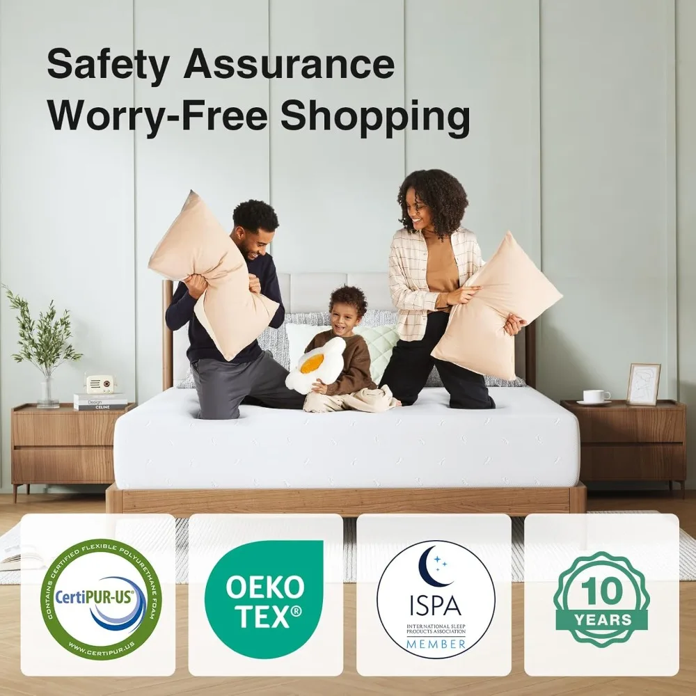 • 【Safety-First Certified Layers】 Crafted with CertiPUR-US certified foam and OEKO-TEX certified cover, all components of the full memory foam mattress meet rigorous standards for safety. This dual-certification system eliminates harmful substances while promoting safer, healthier sleep through verified sustainable sleep environments