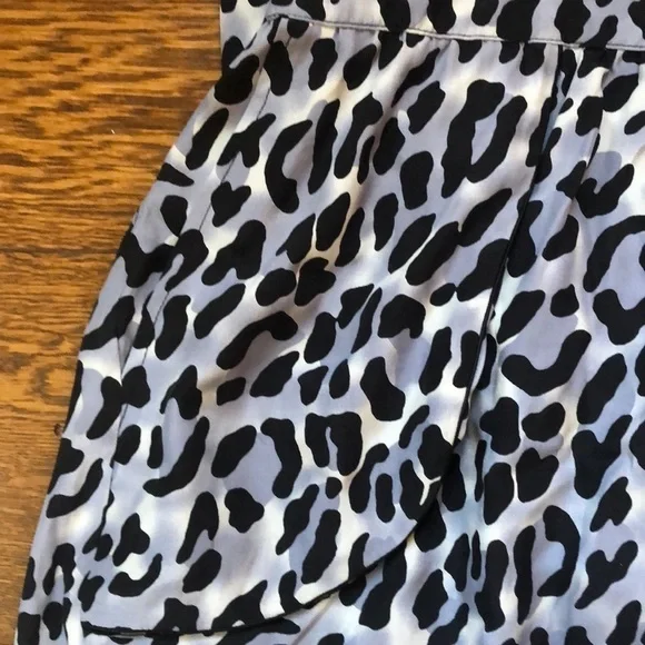 Luxe 100% silk romper exclusively for Intermix by Derek Lam 10 Crosby. Sexy cutout back and surplice neckline. Leopard print adds a playful element. Sleeveless, v-neck, play suit style. Good for date night or a special event! May be minor wear as pictured. Size 6. Length: approximately 35.25”Pit to pit: approximately 17.75”