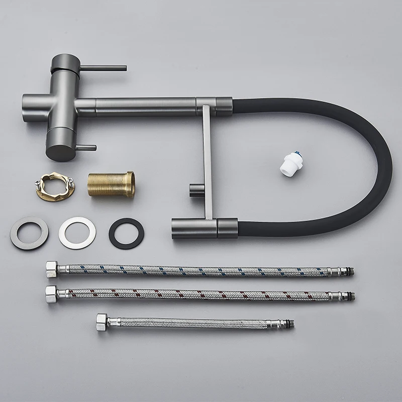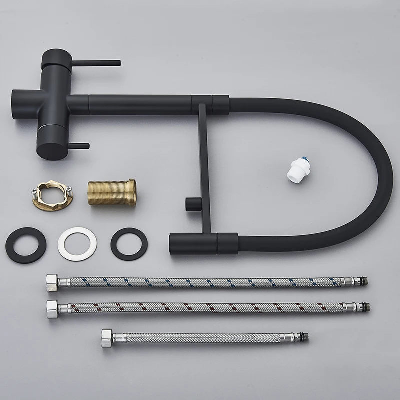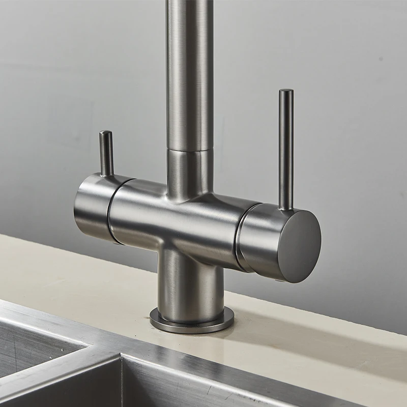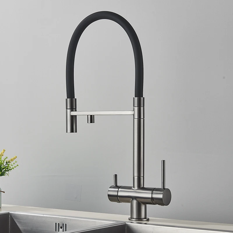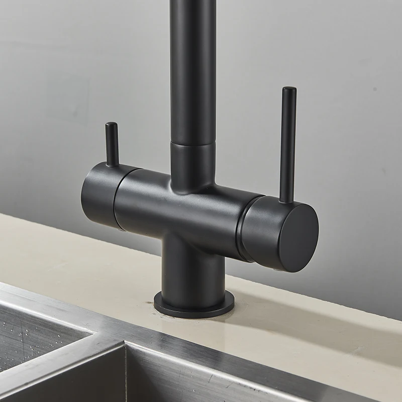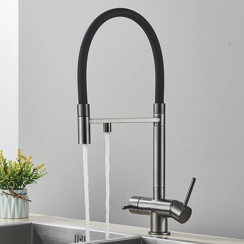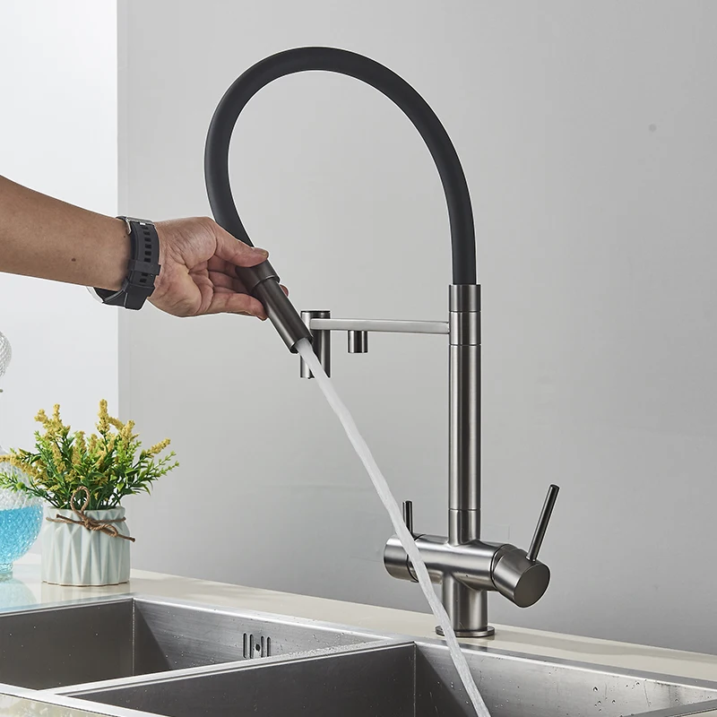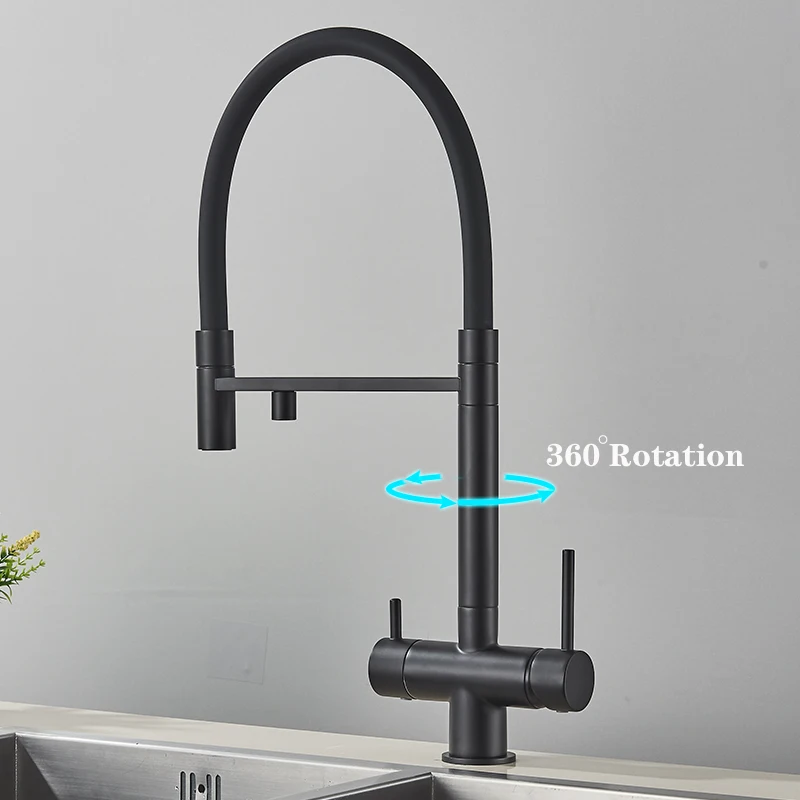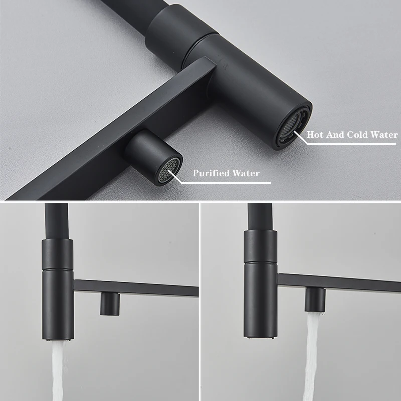 Filtered Kitchen Faucets Dual Spout Filter Faucet Mixer Pull Out Spray 360 Rotation Water Purification 3 Ways Sink Mixer Kitchen