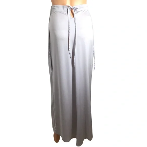 Gorgeous and classy silk adjustable silk maxi skirt by Ann Demeulemeester. Slight sheenThis skirt is a size 36=US 6 but the tie at the lower back is adjustable, making it a customized personal fit.There are also two thin free hanging strips on each side. Tried my best to capture those in the photos.This skirt is in perfect condition with no stains, rips, tears, snags, or pulls.I steam & sanitize all of my garments prior to shipping. No low ball offers please!Please message me for,measurements or any questions you have!