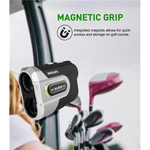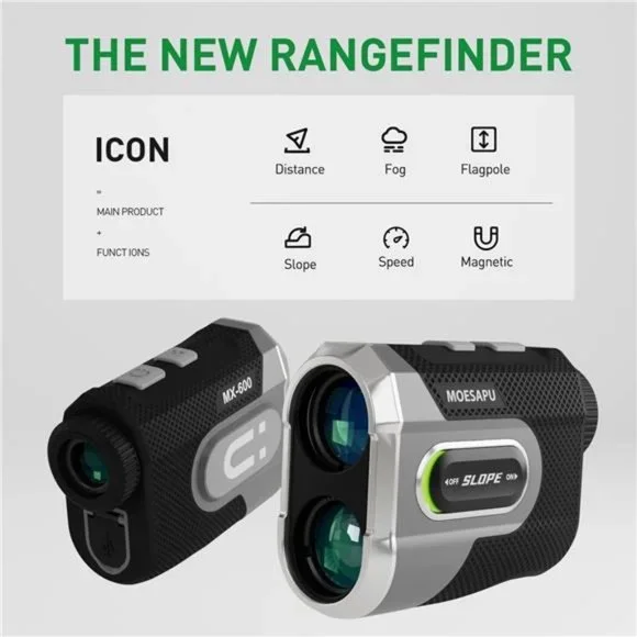 🧿⛳ 【Laser Golf/Hunting Rangefinder】MOESAPU Golf MX-600 Slope Golf Rangefinder is the ultimate golf accessory to locate precise distances within one yard. It has been built with high definition options and brighter resolution with Magnetic strip. 5 to 650 yards, with +/- 1m high accuracy and 7x magnification, choose two units (meters and yards). Speed measurement supports a range of up to 300km/h with an accuracy of +/-5km/h.🧿⛳ 【Adaptive Slope Switch】Take the guesswork out of measuring distances with our newest slope laser rangefinder. Featuring continuous arc technology, the system automatically takes into account the incline and decline to give you the true distance between you and your target. Quickly toggle the slope function from on to off with the slope switch to make this device tournament legal.🧿⛳ 【Built-in Magnet, A Belt-Clip Gift】MX-600 Rangefinder features an all-new built-in Magnetic Strip with industry-leading magnet strength. Conveniently clip the item to your golf cart, golf club, or any metal surface for quick play between shots. As a gift, you can get an iron plate and use it to fix it to your belt, and then attach the rangefinder to your belt for easy access.🧿⛳ 【Fast Focus System】you can easily adjust the focus to shot the target clearly, turn the eye pieces to focus on your target . the rangefinder will automatically shut down after 8 seconds to save the battery power. you just need to press the power button to turn it on again.