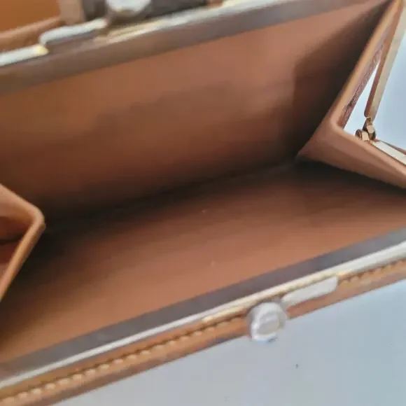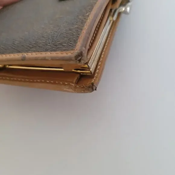 Authenticmeasures width 5,5" height 3,7" depth 0,7"Bill compartment, kisslock pocket, 6cards and longer compartmentsGold hardwareCondition is pre-owned, exterior moderate wear mostly edges and tarnish on hardware, interior most wear inside kisslock compartment tears on stitchings, overall fair/good condition.Please check out my other listings bundle for discount. Thank you!