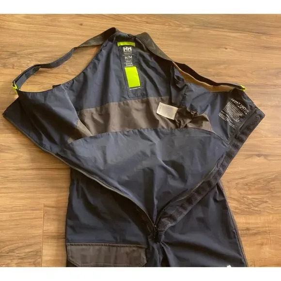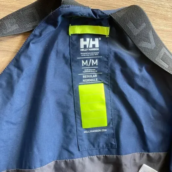Helly Hansen Bib Overalls Womens Medium Blue Pockets Zip Up Outdoors Helly Tech Sports Waterproof Pockets Zip Up Stretch Suspenders Hook and LoopWater Wind Nature AdventuresHi, Thanks for viewing!** Please Note: One bottom pant leg has a small surface slit on exterior. However, slit has not penetreted the lining. There are also marks on the bottom hem area of the pants. There is a little debris on the hook and loop. However, does not affect the ability to seal. ***Approximate measurements are photographed. Please check the photos to view them.This item is looking for a great home!Smoke Free Home