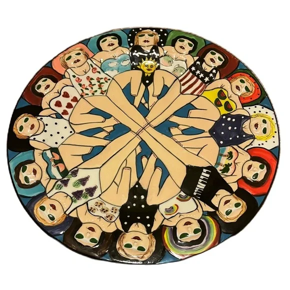 Janice Joplin ‘fun seekers’ vibrant hand-painted plate featuring a ladies water ballet Vintage 2003 original art Fun, whimsical piece