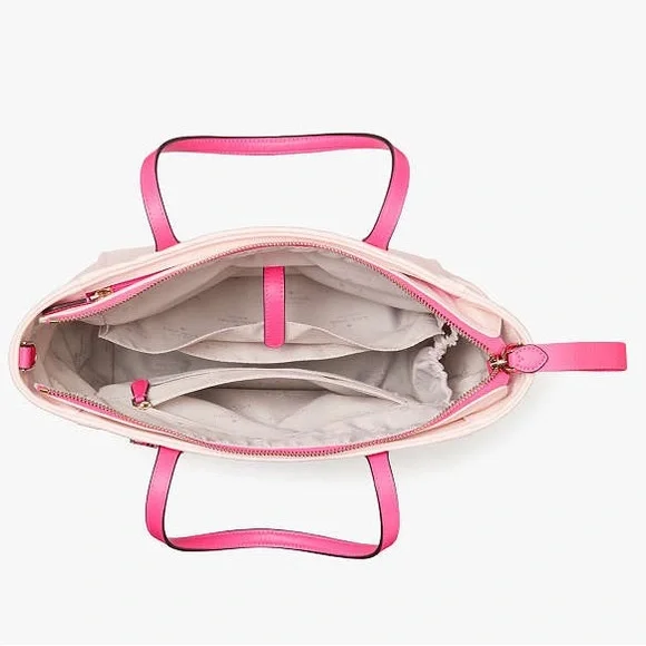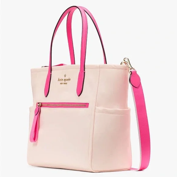 100% Authentic (Guaranteed!) Brand New with Tag Style Number KE404MeasurementsLength: 5.2"Height: 10.0"10.72"W at bottom, 14"W at topMaterials100% Recycled NylonSmooth PVC trim2 Way Script Logo LiningHandleHandle drop: 5.8"StrapStrap drop: 22"Adjustable strapFeaturesExterior front zip pocket, 2 side pockets, top zip pocketInterior front slip and back zip pocketsFront interior credit card slotsDrop zip top closureKey leashMetal Pinmount We love how classic and feminine our satchels are. You'll love how much space we've designed into each of ours. Choosing which color to get will be your hardest decision--and never what stuff to leave behind.Bundle to Save! Check out many other bags totes satchels backpacks weekenders wallets wristlets crossbody purses cosmetic cases iPhone cases earrings necklaces rings beach towels bath hand towels washcloths towel sets shoes boots booties lace up slip on slippers socks sandals shorts pants tights leggings pjs joggers loungers tees tanks blouses pillows mats rugs jackets windbreakers swimsuits goggles hats throw blankets comforters sports bras underwear briefs bikinis sleepwear sleep shorts shirts in my Closet. Thanks!