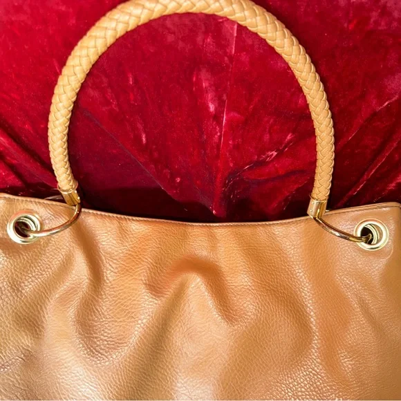 Check out the Kenneth Cole Reaction tan leather shoulder tote! Really cool find, unique design, and a RARE leather piece from Kenneth Cole Reaction for those who know! 😉 I think this may have been a once-upon-a-time Macy’s purchase, but I shop too much! Lol! I haven’t seen others of this design (tote instead of satchel)Large & roomy with a zip & slip pockets. It’s a really nice bag and simply exudes that effortless, classic look, especially with the feature of the braided handle. That one accent brings just the right amount of character. The front is adorned with a branded metal band plate. See pics for great hardware condition! Bag is clean- callouts in pics - front top tiny cracksI chose photos in multiple lightings to help you best gauge the tan color. Keep in mind that computer monitors, screen settings, and device type can impact color perception.Pls use pics as part of description 🤗Versatile style is the name of the game with Kenneth Cole Reaction. Known for luxury, comfort, & style. It’s considered the voice of the next generation, inspired by young, energetic individuals who want to move the world.Kenneth Cole Reaction handbag shoulder bag toteClassic? Preppy? Boho? Vintage? Collegiate? Throwback? Modern mamacita? So many vibes in one bag!It’s like if a Michael Kors and a Coach had a baby and then sent it to summer camp where it became really close friends with a Dooney- & then came back from vacay for the next school year with an aura of sophistication 💃