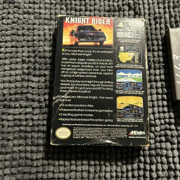 Experience the thrill of the ride with Knight Rider for the Nintendo Entertainment System. This classic 1989 release puts you in the driver's seat of a high-speed race across the United States, with challenging courses and intense competition. Get ready to rev your engines and prepare for some high-octane action with this exciting racing game.With a rating of E-Everyone, this game is suitable for all ages and features exciting boxing sub-genre elements. Published by Acclaim Entertainment, Inc. and manufactured in Japan, this game is a must-have for any NES collector or gaming enthusiast. Don't miss your chance to add this iconic game to your collection.