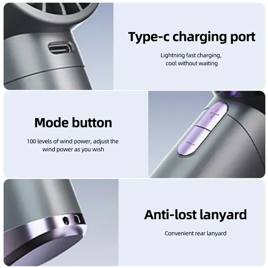 Mini Camping Fan Portable 3000 mAh Rechargeable Mini Fan with 100 Wind Speeds Adjustable Handheld Turbo Fan Low Noise Mini Fan