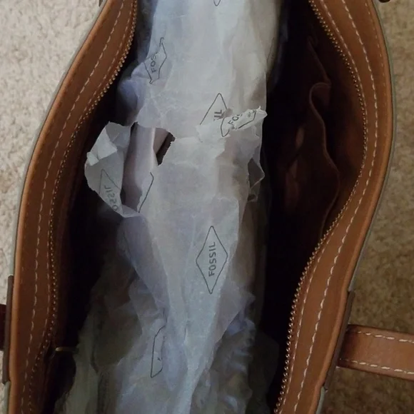 New! FOSSIL Light Grey/Creamish Printed Zippered Purse. Never used but the tag fell off. So pretty!Approximate Measurements:Length: 12.5"Depth: 6"Height: 11.25"