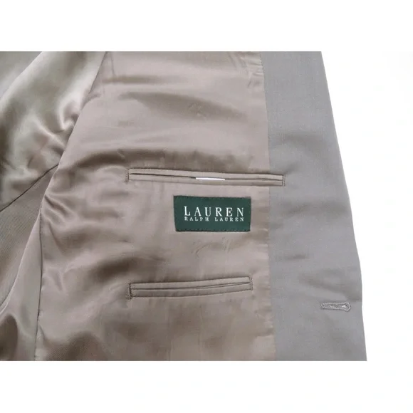 Description: NWOT Lauren Ralph Lauren LRL 100% Wool 2 Button Blazer Sport Coat Jacket -Two button closure -Two front flap pockets-Left chest pocket-Single vented back-Four button cuffs-Notch collarSize (Check Measurements): Mens 46 RColor: TanFabric: 100% woolCondition: New Without TagsItem#: 66263Measurements are in inchesArmpit to armpit: 24 1/2"Back bottom of the collar to the hem: 30 1/2"Shoulder to shoulder: 20"Shoulder seam to end of cuff: 24 1/4"BUYING VINTAGE·We do our best to thoroughly inspect all items for any visible imperfections i.e., rips, repairs, holes, stains, etc. and note as such.·Please note vintage sizes are not always comparable to today's sizing. Please refer to the measurements in the description for a more accurate depiction of the true size. If an issue should arrive, please contact us prior to leaving a negative as we strive for providing excellent customer service.Please compare your measurements to the measurements provided in the listing description to ensure a proper fit. 62952