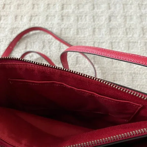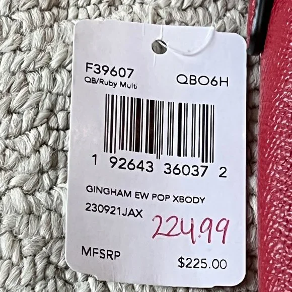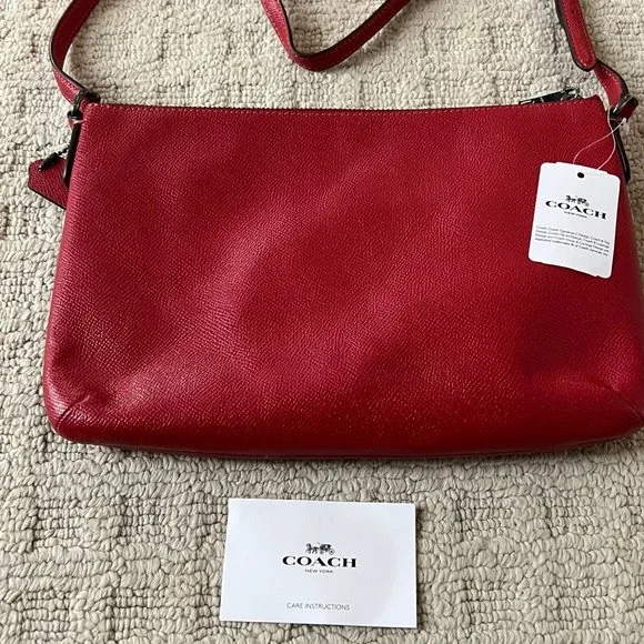 Brand - CoachColor - Red & Black Gingham PrintNotes:* Crossgrain leather and printed coated canvas* Inside multifunction pocket* Zip-top closure, fabric lining* Removable zip pouch* Outside open pocket* Adjustable strap with 23" drop for shoulder or crossbody wear* 10.5in x 6.75in x 1.25inNew with tags - excellent condition - no holes or deformities