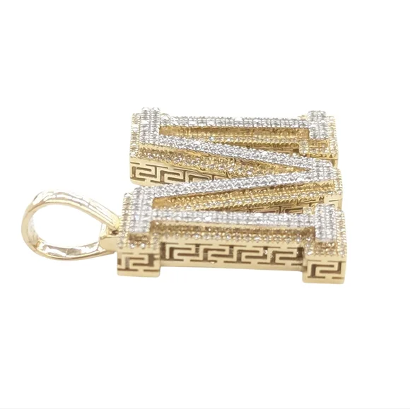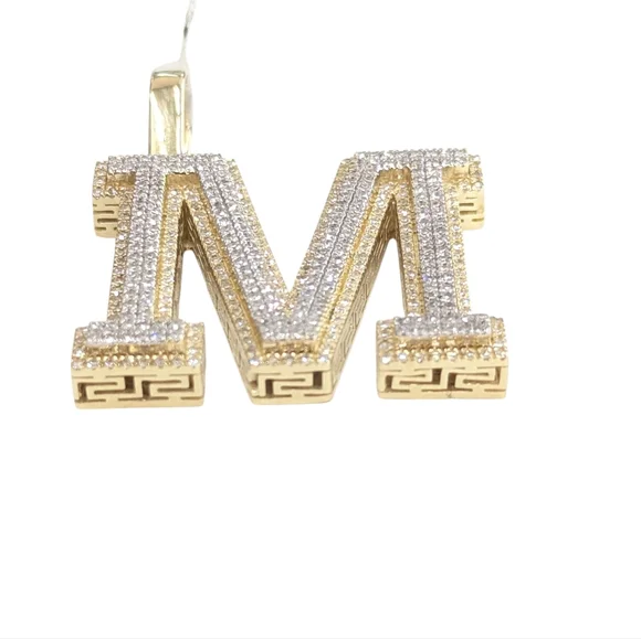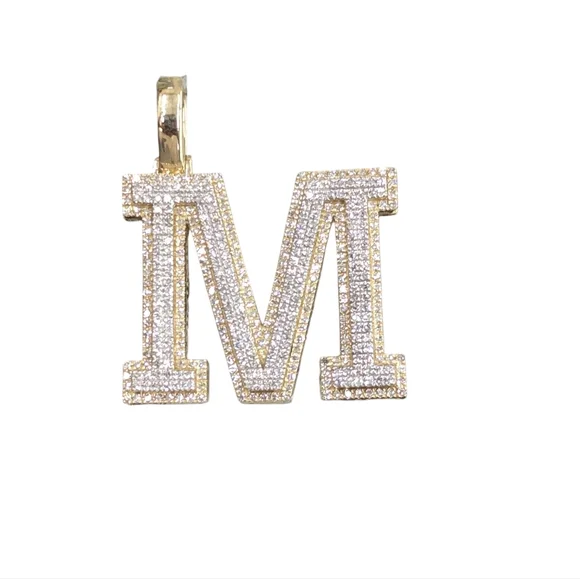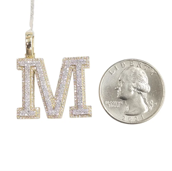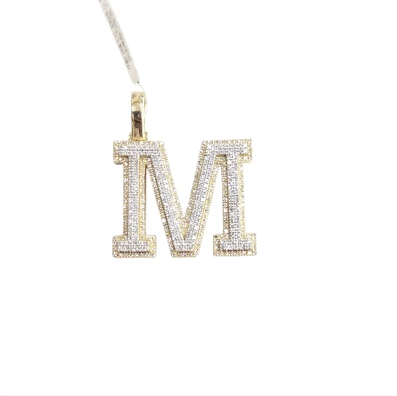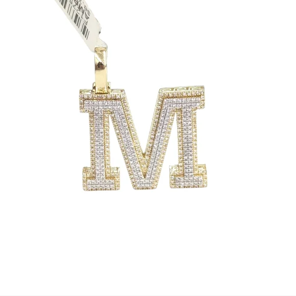 Real Diamond 10kt Two tone Block Letter M Pendant 100% Authentic Natural Diamond Total carat Diamond 0.79 approx Total Height 1.22 Inches with loopLetter M Size without Bell 27*22 mmWeight 7.58 gmPlease check the picture carefully to understand the size of the pendant 100% Authentic 10kt Gold Not a Gold Plated or Not a Gold Filled Comes in a Gift box