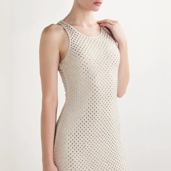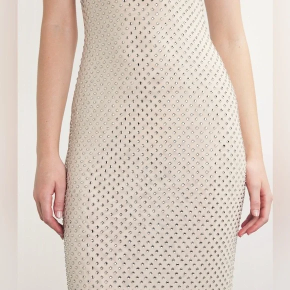 Tried on only,Like new condition.Size:US6 | UK10•Bust:33”•Waist:28”•Hips:34” SELF-PORTRAITEmbellished mesh maxi dressMaterial: 95% polyester, 5% elastaneCare instructions: dry cleanMade in ChinaDesigner color name: CreamLining: 95% polyester, 5% elastaneClosure: zipper, hook fasteningTrue to sizeFittedStretchy fabric