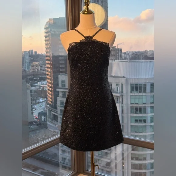 🧿🧿SELF-PORTRAIT Black Tinsel Boucle Halter Mini DressTaking a cue from a quintessential 90s silhouette, this mini pairs the soft structure and sheen of tinsel bouclé with a flattering halter neck design edged in diamanté. Fitted style, take one size up if between sizesThis style has minimal stretchZip closure at backFully linedCOMPOSITIONShell: 72.3% Polyester 22.9% Metallised Fibre 2.8% Viscose 2% WoolLining: 100% PolyesterSIZESize UK 10 = US 6Please see photos for approximate measurements (pit-to-pit; waist)🧿NWOTBrand New, Never WornNo inclusions: no tags; as is.MSRP $555🧿🧿🧿🧿🧿🧿🧿ALL OUR ITEMS ARE AUTHENTIC. We are a shopping collective of friends working in the fashion industry around the world, based in Toronto 🧿 Check out our closet for more great finds to bundle and save!Every attempt is made to describe and capture our items as best and as accurately as possible, taking note of any possible flaws. Ultimately, please refer to all photos for overall condition. Please feel free to ask questions or request more photos. In an effort to reduce waste, we also use recycled materials in our mailing.Follow us on IG @the.procuress for more photos of our stock!Happy shopping,The Procuress🧿