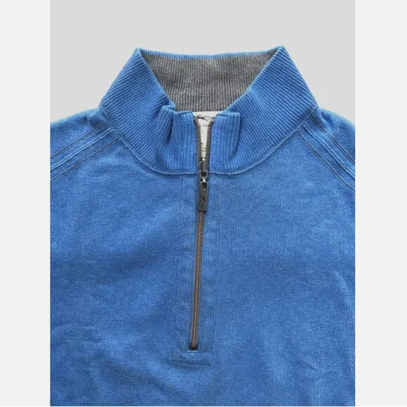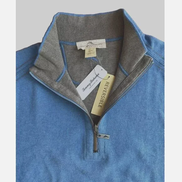 Tommy Bahama Download Blue Heather Flipside Half Zip Reversible SweaterNew with tags: A brand-new, unused, and unworn item (including handmade items) in the original packaging (such as the original box or bag) and/or with the original tags attached. Material - 100% Cotton