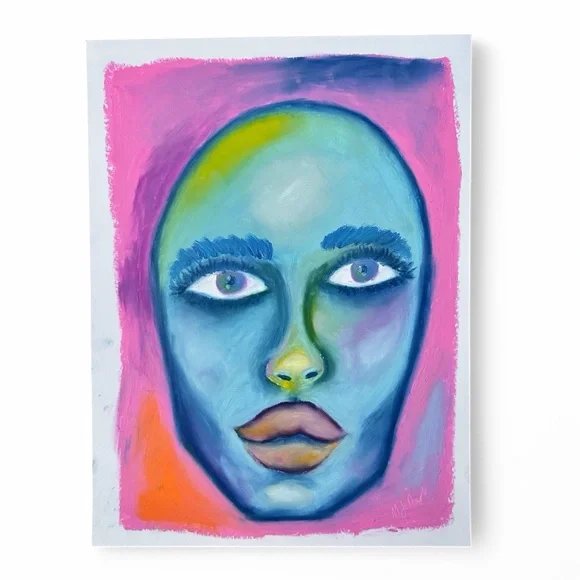 This expressive oil pastel portrait captures the quiet courage of practice in motion. A surreal face, awash in layered hues of blue, green, and violet, tells the story of learning in real time—where every mark matters and nothing is final. There’s honesty in the asymmetry, beauty in the boldness, and a softness that speaks to becoming rather than being.Perfect for collectors who value raw emotion, color exploration, and the art of showing up before you feel ready.Medium: Oil pastel on paperPaper: 100lb Bristol SmoothSize: 9x12Finish: Unframed / Ready to be framed / Signed*No prints available Frame not included.This is an original handmade piece of art by me.