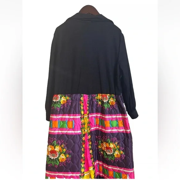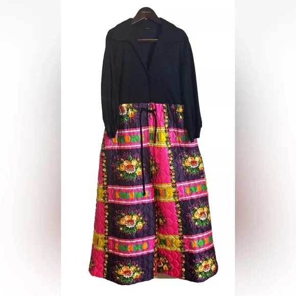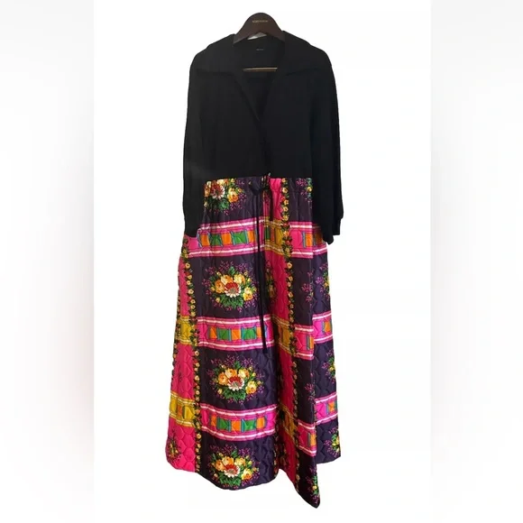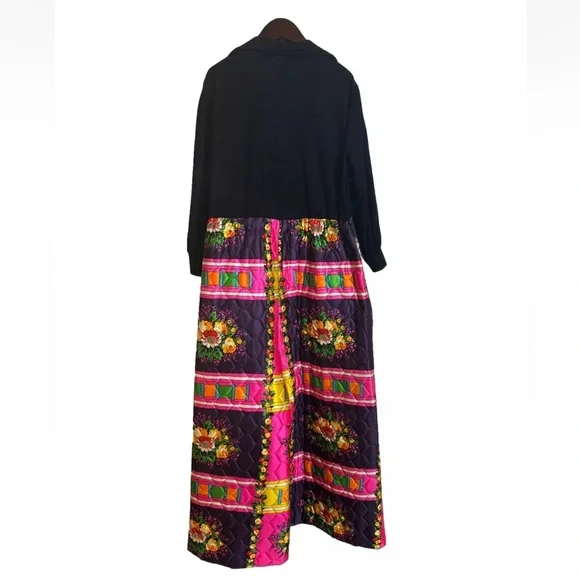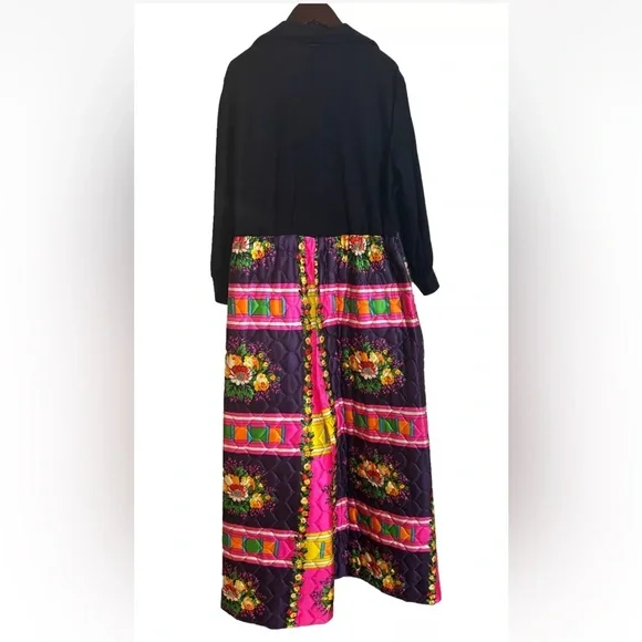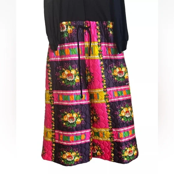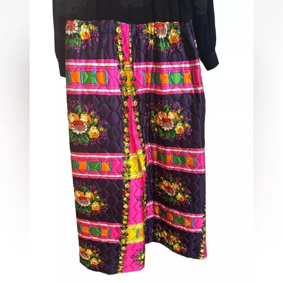 Vintage 70’s Retro Hippie Quilted Floral Wide Leg Handmade Jumpsuit S/M BohemianFits sizes S/M Pit 2 Pit- 23in , Rise- 19.5in , Inseam- 21.5in , Length- 56in, Shoulder 2 Wrist- 20in Drawstring waist , Collared , LongSleeve, pockets Black long sleeve 70’s v-neck bodice with wide leg neon floral patchwork Quilted wide leg pant bottom Small rip on the left back side by the shoulder please see photos Hot Pink, Neon Orange , Yellow, Green Handmade , Vintage, Rare, 1970’s , Unique Zip and drawstring closure on the pants and button closure on the top SKU- OR