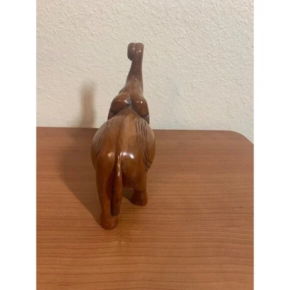 Vintage Wood Carved Elephant Figurine Trunk Up Brown