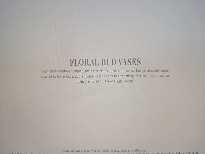 Williams Sonoma Pastel Floral Glass Bud Vases - Set of 3