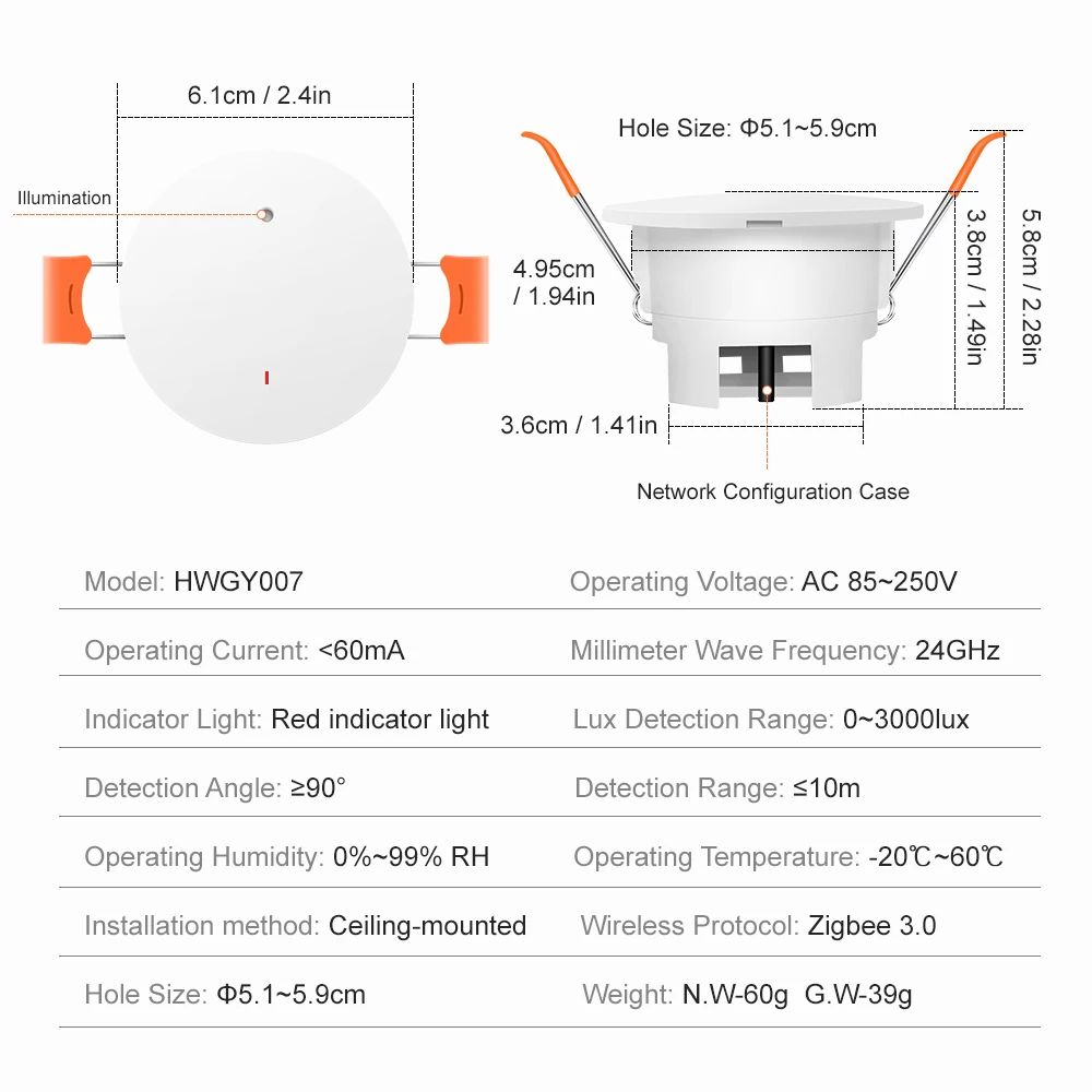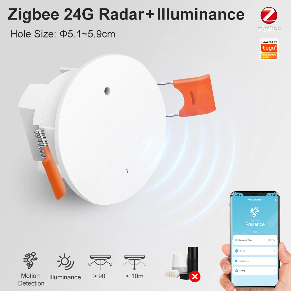 Zigbee 3.0 Motion Sensor 24GHZ MmWave Human Body Presence Sensor For Light Switch Luminosity Detection 110/220V Tuya Smart Home