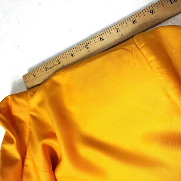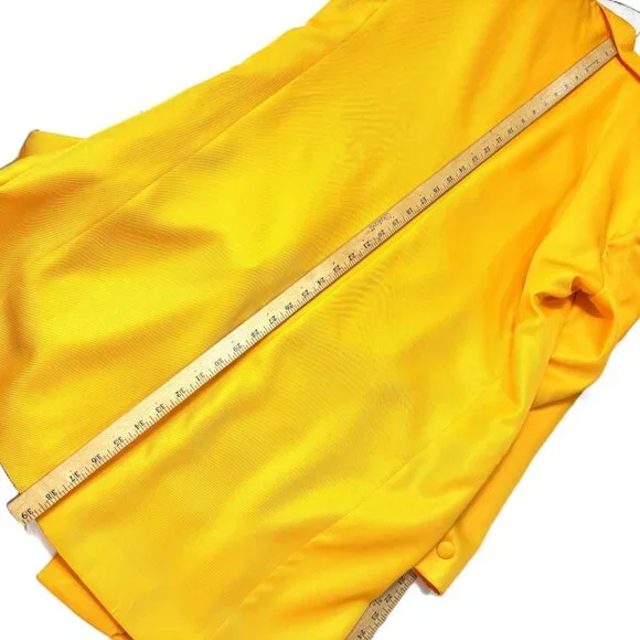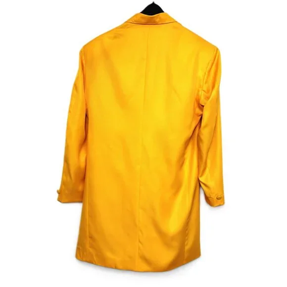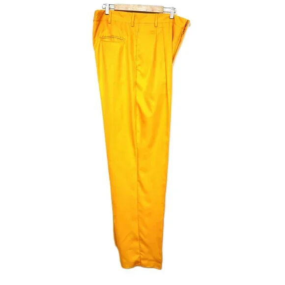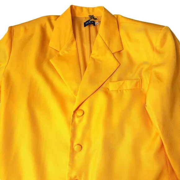 Classic Zoot Suit Costume for the 1920’s – PresentOr Wear for The Mask 1994 American Super Hero Comedy Film 2 Pc Long Jacket and pants XL Jacket Fully Lined Pants have pleated front Yellow Gold Color Polyester Fiber # Written in lining is the costume shop inventory EUC – No rips tears or stains TAG XLApprox Flat Lay JACKETPit to pit 25”Across Back seam to seam 20”Side neck across shoulder 7.5” shoulder to cuff 26”Total 33.5”Center back neck to hem 39”PANTSWaist 19”Rise 15.25”Inseam (left long so you can alter to correct length) 35”
